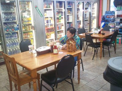 But the dining area was literally tucked right into the rest of the convenience store. The tables are surrounded by beverage coolers and snack aisles.